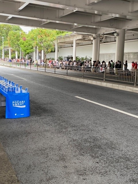 大江戸線国立競技場駅に到着。大勢の人が沿道を目指す。ラストの給水所そばで小林選手を待った。